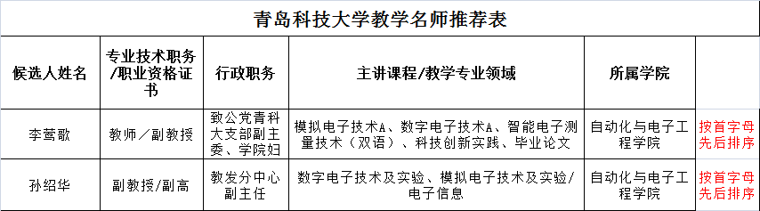 根据学校《关于开展青岛科技大学第十届教学名师奖评选工作的通知》,pg电子平台 推荐2名教师参加师第十届教学名师奖评选,公示如下: