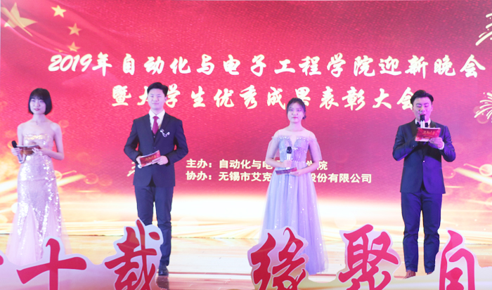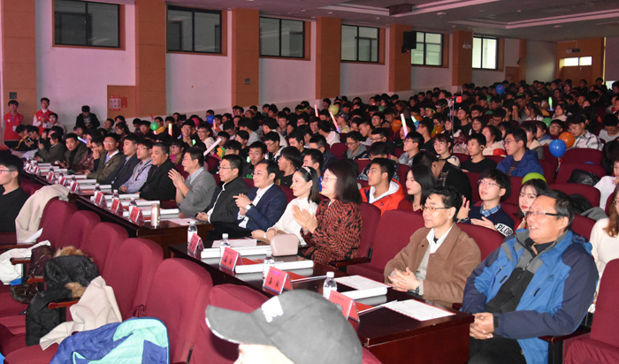 迎新晚会暨大学生优秀成果表彰大会在崂山校区第二报告厅举行。青岛科技大学党委常委、副校长吕万翔,无锡市艾克特电气股份有限公司董事长刘建,总经理、杰出校友宋明忻,青岛科技大学创新创业教育pg电子平台