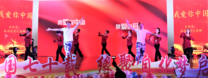 老师们用舞蹈《我爱你中国》,表达了对祖国母亲的浓浓爱意;“爱要大声说出来”,QUeSTuoners组合带来了说唱表演《红色Remix》,他们用最潮的方式,向祖国大声告白;《太极之道》让我们领略了中华传统文化的风采;表演者们舞动灵活的双手,用一个个手语,完成了手语操表演《国家》。下篇章在朗诵《青科是一首歌》中缓缓拉开帷幕,朗诵者声情并茂,感情充沛,将青科以歌的形式表现得淋漓尽致;相声表演《五行诗》延续场上轻快的气氛,说学逗唱,样样精通,场上包袱不断,场下一片欢声笑语;歌曲《你的答案》,震撼人心,如同晨光熹微,破除黑暗,奔向光明;学生会成员带来的舞蹈《偶像练习生》,向全体新生展现他们无尽的热情;歌曲《六月的某一个早晨》,吉他、贝斯、架子鼓交相呼应,歌声铿锵有力,气氛更加热烈;最后,由辅导员吴擎、井震老师和19级班长、团支书带来的舞蹈《野狼Disco》将气氛推向高潮;晚会在全体演职人员的合唱《我和我的祖国》中落下帷幕,灯光闪耀,红旗飘飘,台上台下一片红色海洋。