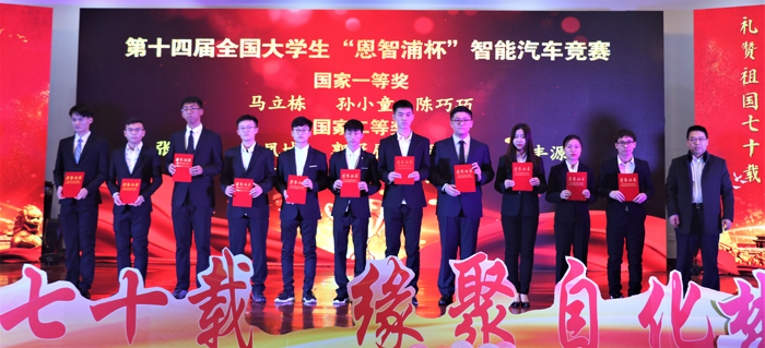 副校长吕万翔等嘉宾分别为2019年全国大学生“恩智浦杯”智能汽车竞赛、“西门子杯”中国智能制造挑战赛、“TI杯”全国大学生电子设计竞赛以及pg电子平台