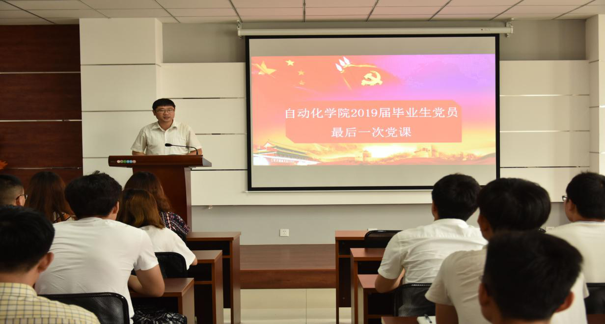6月21日,党总支副书记马寒以“不忘初心,砥砺前行”为题,为2019届毕业生党员上最后一堂党课,希望全体毕业生不忘初心、继续前进,鼓励毕业生党员要时刻铭记入党誓词,以高标准严格要求自己,发挥党员的先锋模范作用,在更广阔的舞台展示自己,为实现中华民族伟大复兴的中国梦注入不竭动力。