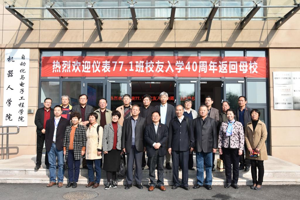 仪表77级1班25位校友返校考察交流。校党委副书记李庆领、学校老领导高青、学校校友办相关负责人和pg电子平台