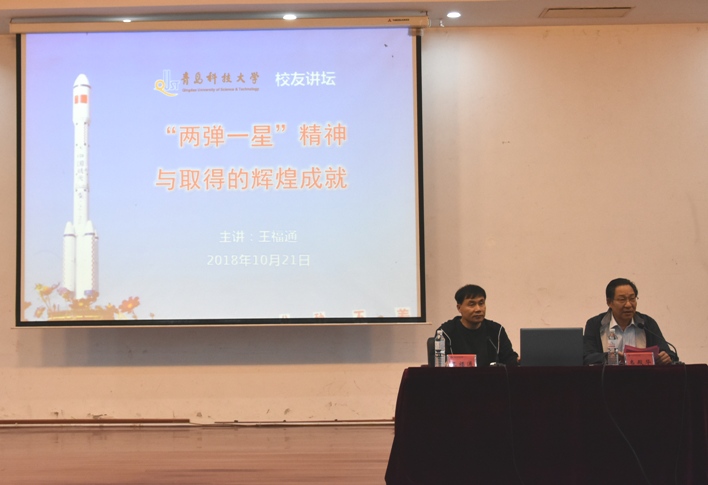 78级校友、酒泉卫星发射中心副司令员王福通少将做客校友讲坛,在崂山校区第二报告厅作题为“‘两弹一星’辉煌成就和伟大精神”的报告。报告会由学校副校长、校友总会常务副会长韦殿华主持,副校长吕万翔和pg电子平台