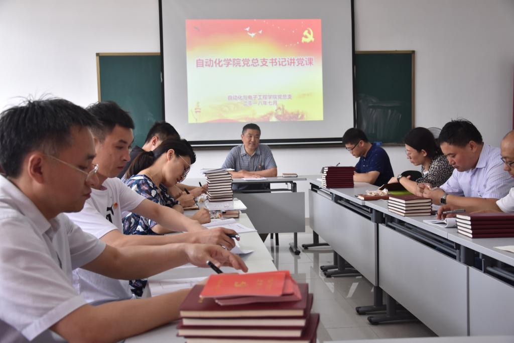 党建活动室为各党支部书记上“不忘初心,砥砺前行”主题党课。郭仲聚从指导思想、共同理想、实现道路、战略方针、发展举措、根本立场、实现途径和根本保障等八个方面对“不忘初心,砥砺前行”进行了系统阐述,对各党支部的教学、管理和服务育人工作提出四点要求:一是明确使命担当,二是增强党性意识,三是树立底线思维,四是强化高线追求。他号召各党支部通过开展主题教育活动,引导全体师生党员时刻不忘初心,不断强化“四个意识”、做到“四个服从”,不断增强党内政治生活的政治性、时代性、原则性、战斗性,不断增强基层党组织自我净化、自我完善、自我革新、自我提高能力。