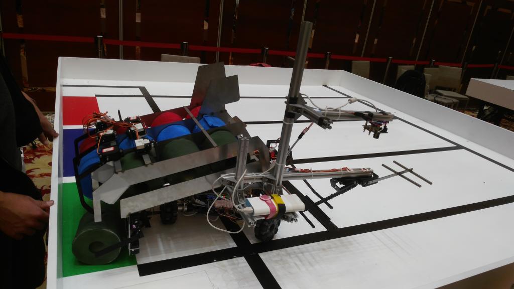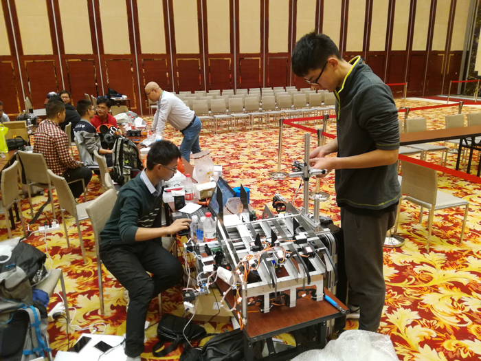 “永恒之蓝”队所设计的机器人采用全向轮驱动,单目摄像头检测位置并辨别颜色,合理高效设置拾取、存储和放置方案,受到了其他参赛队和观众的高度关注。