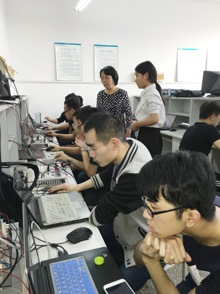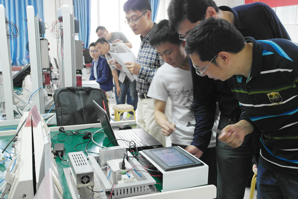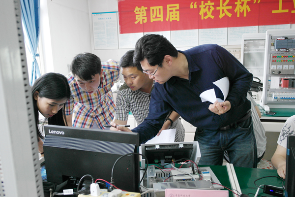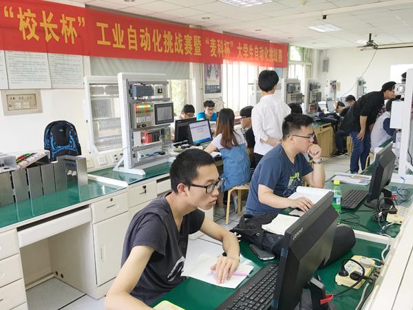 专门成立了大赛指导小组,安排具有多年大赛指导经验的于飞、张伟、邢关生等几位导师负责专项培训工作。从3月初开始,几位老师和二百余名学生组成的训练队伍克服工程认证以及实验室搬迁改造等各种困难,利用业余时间进行了模块化式的培训并有针对性的进行单独辅导训练,几位老师放弃休息时间和学生一起进行方案设计和程序调试。通过2个多月的训练,学生普遍感到收获很大,目前参赛学生信心饱满,对竞赛的题目已经有了充分的认识,设计和编程能力都有了很大进步,具备了应用可编程控制器(PLC)实现系统自动控制的能力。