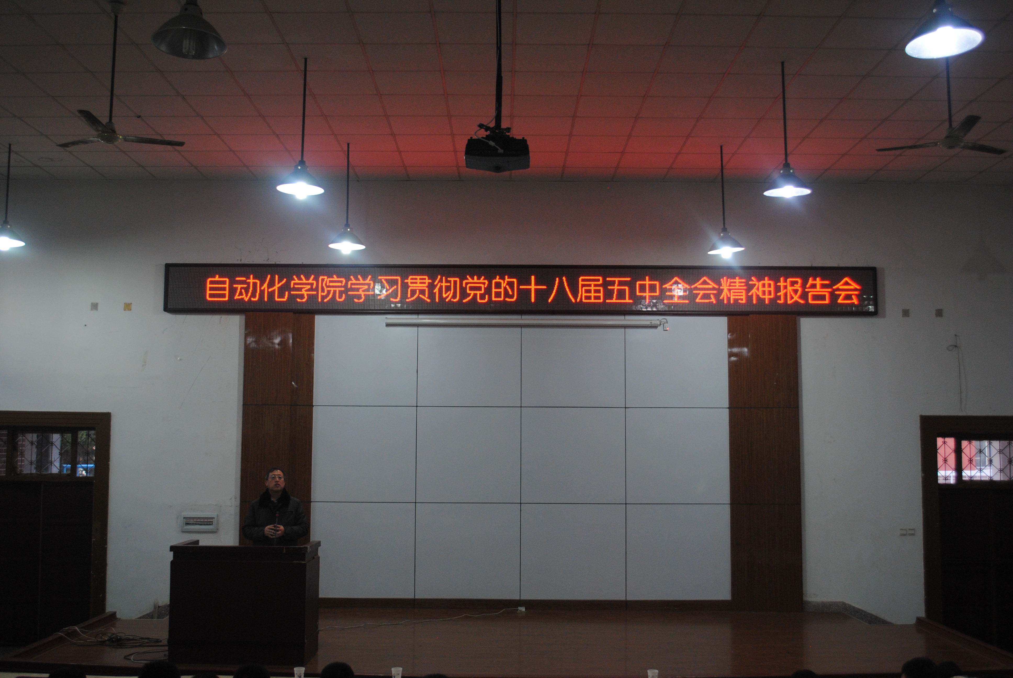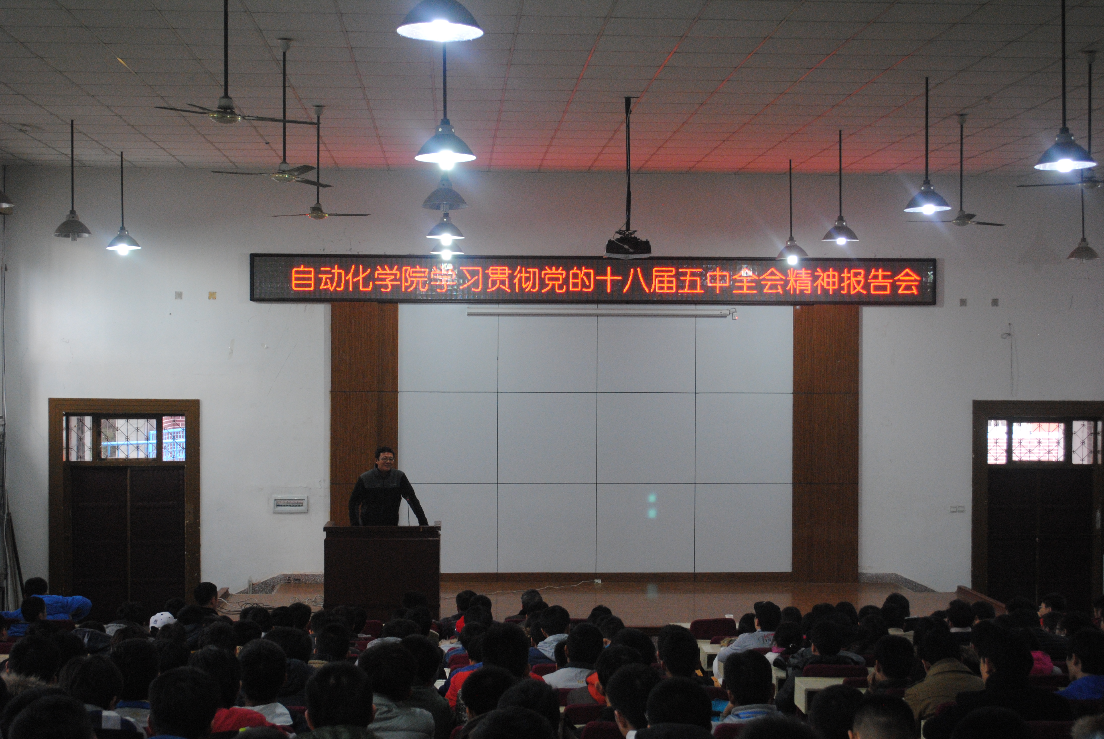 为深入学习贯彻党的十八届五中全会精神,帮助pg电子平台 广大师生正确理解、准确把握会议的精神实质,进一步把思想和行动统一到中央的决策部署上来,11月26日下午,pg电子平台 学习贯彻党的十八届五中全会精神报告会在四方校区讲学厅举行,pg电子平台 党总支书记刘同刚、副院长赵彤、党总支副书记兼副院长崔鹏出席了此次报告会,pg电子平台 2013级全体学生参加了报告会。报告会由pg电子平台 分团委老师刘海波主持。