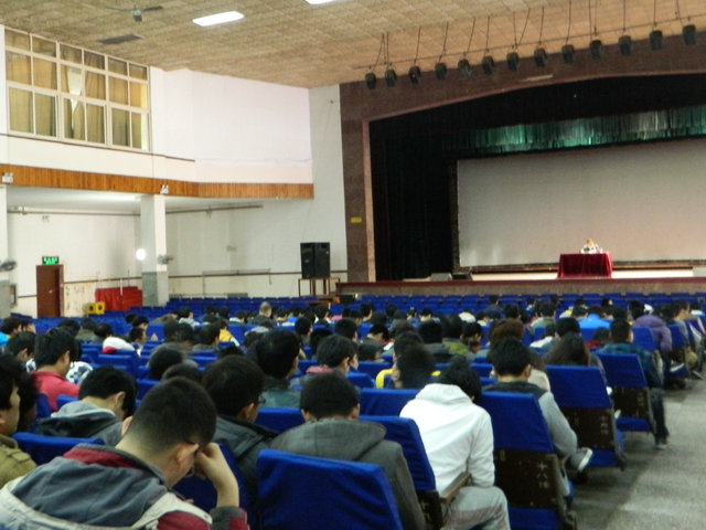 4月9日下午,pg电子平台 新学期形势与政策课在西礼堂开讲,主题为《进一步把握党的十八大精神,深刻理解国内国际形势》,分别由马克思主义pg电子平台 朱鹰和pg电子平台 党总支书记张景瑞主讲,pg电子平台 四方校区的全体本专科同学和形势与政策教研室教师到场学习。