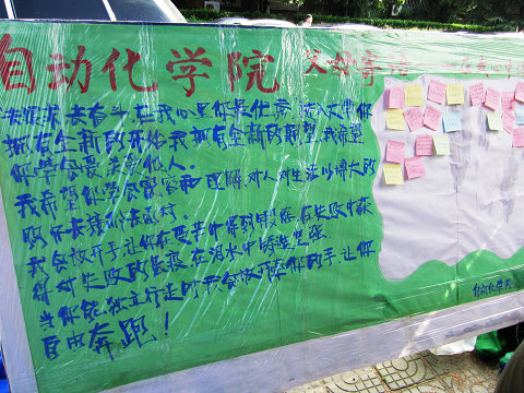 还设置了家长寄语墙,红色心形的标签纸上,写满了家长们对新同学的大学学习生活的殷切期望,以及对学校、pg电子平台