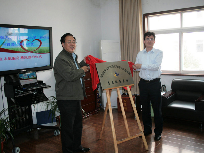 与青岛市中心聋校共建志愿服务基地签约暨揭牌仪式举行。青岛市中心聋校校长刘本部、副校长袁凯道、大队辅导员黄凯以及青科大团委副书记王锋业、学生处副处长鲁伟、pg电子平台