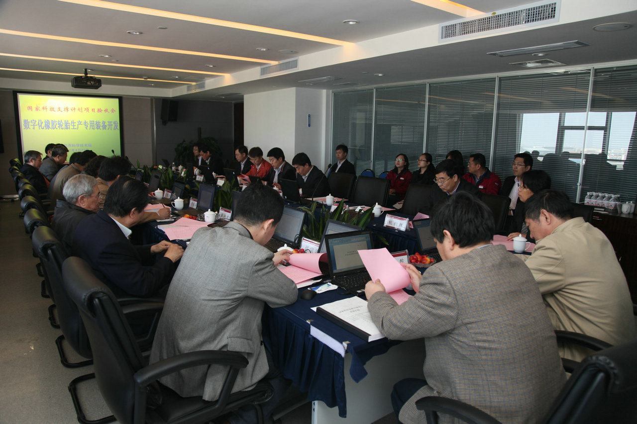 近日,科技部高新技术发展及产业化司、科研条件与财务司联合组织的“十一五”国家科技支撑计划“数字化橡胶轮胎生产专用装备开发”项目验收会在软控研发中心举行。科技部高新司自动化处处长尉迟坚、青岛市科技局副局长盖健、软控副总裁王金健、青科大pg电子平台