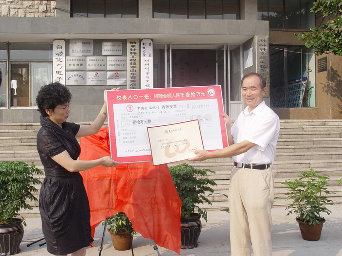 仪式上,高青接受了校友李文清的捐赠并向仪表80.1班颁发捐赠证书;仪表80.1班的黄发辉校友代表全班同学发表了热情洋溢的讲话,殷切表达了对母校和老师们栽培的感激之情。高青书记与pg电子平台