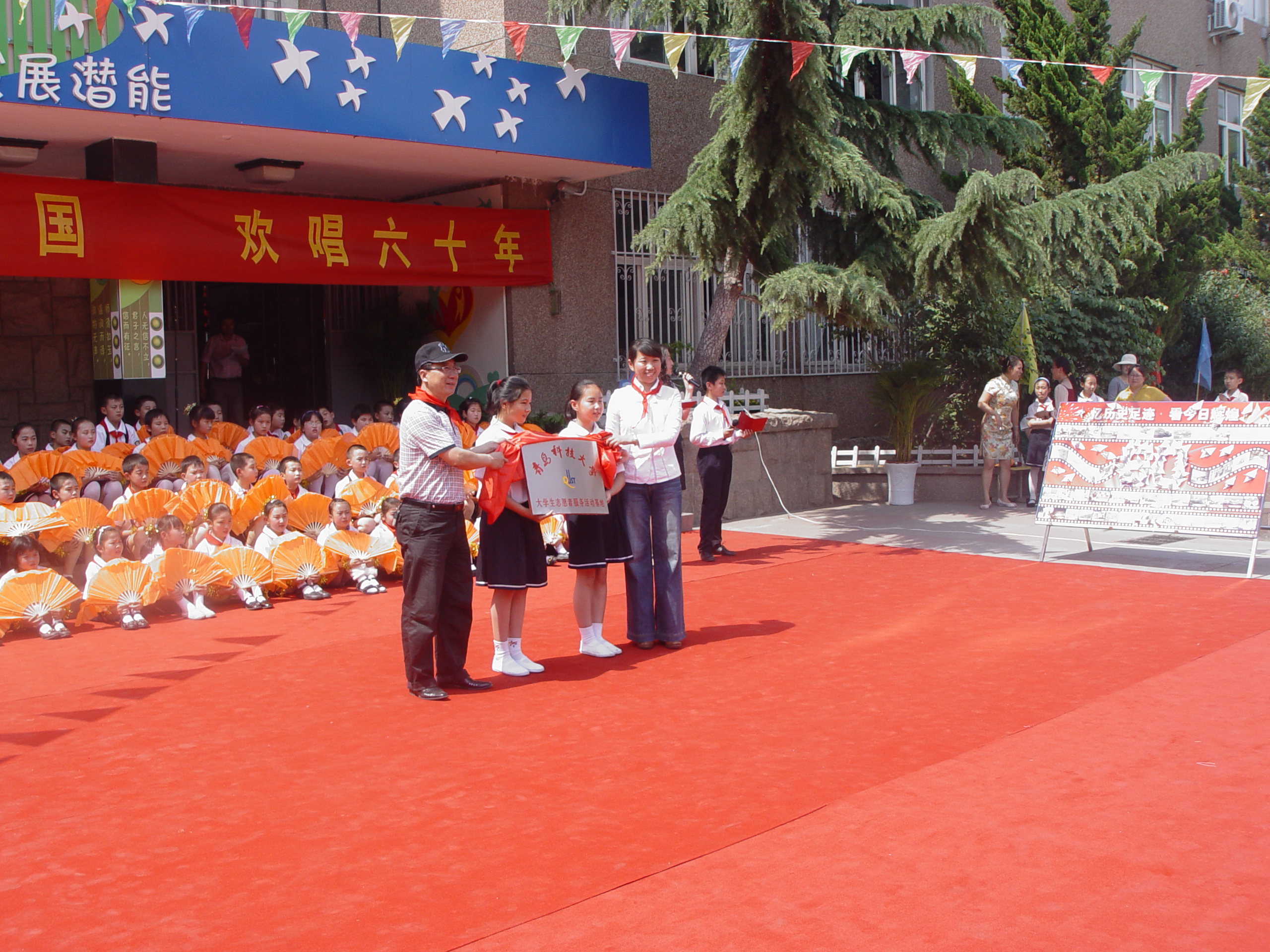 与洛阳路第一小学举行大手拉小手——青岛科技大学大学生志愿者服务基地揭牌仪式。出席仪式的有青岛科技大学pg电子平台