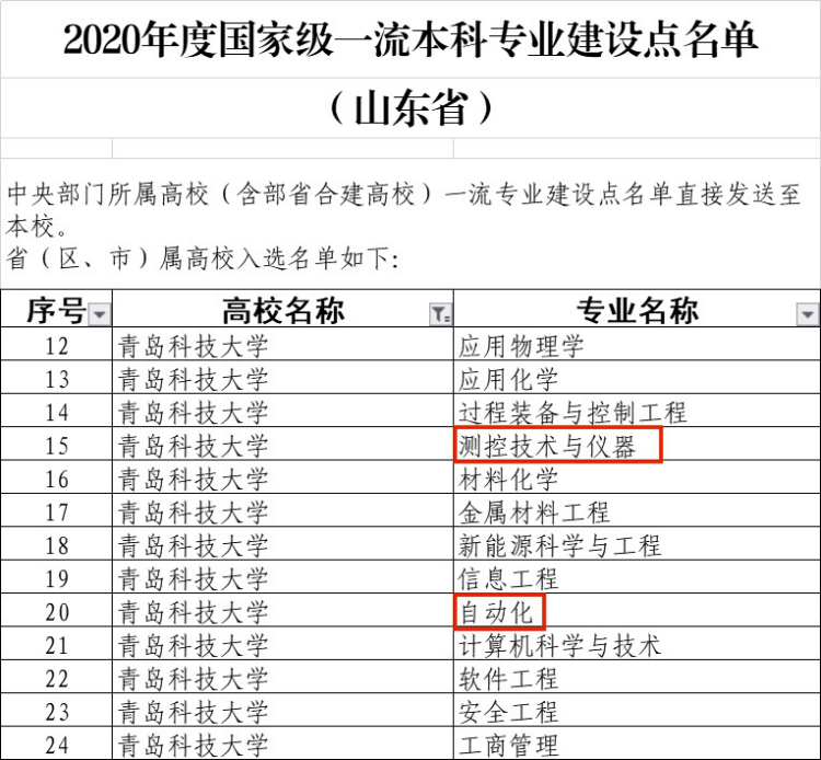 “测控技术与仪器”、“自动化”2个专业获批2020年度国家级一流本科专业建设点。