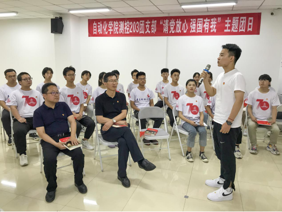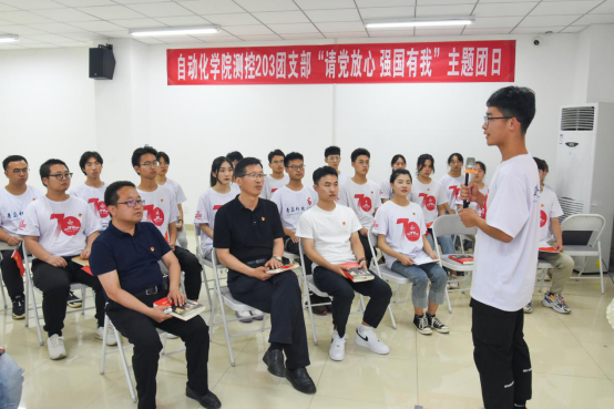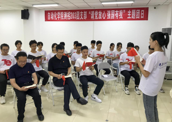 活动最后,党员和团员青年集体朗诵《习近平与大学生朋友们》中“习书记鼓励我争做自主创新的‘排头兵’”节选内容,表达青年学子为祖国、为党的事业奋斗的崇高理想,致力成为实现中华民族伟大复兴的先锋力量,唱响“请党放心 强国有我”的青春强音。