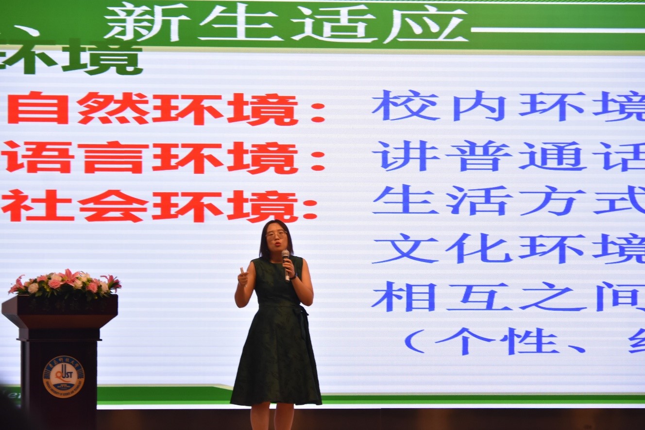 学工办主任、心理工作站站长郭蒙蒙主讲。全体2021级本科生辅导员和全体新生均参与讲座。