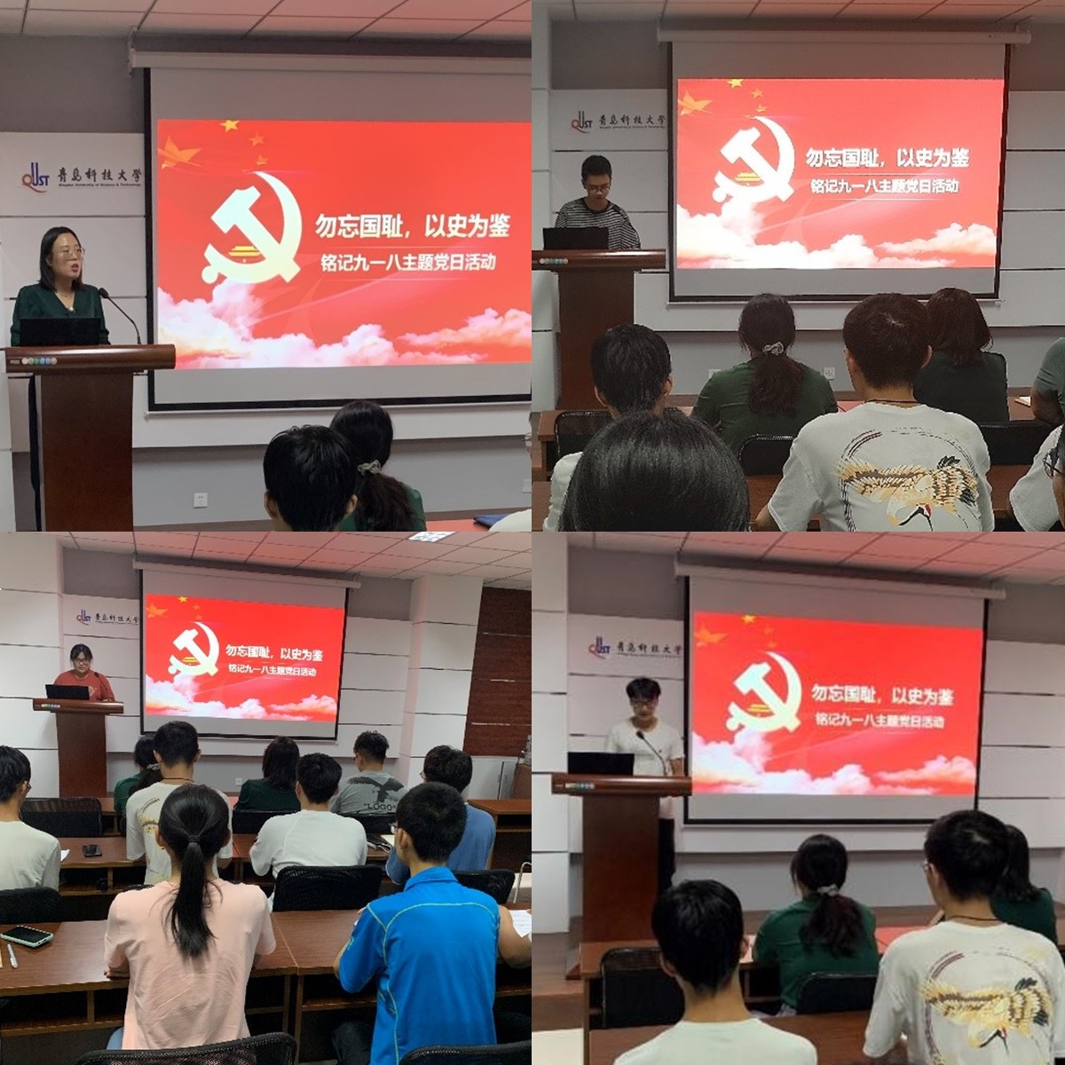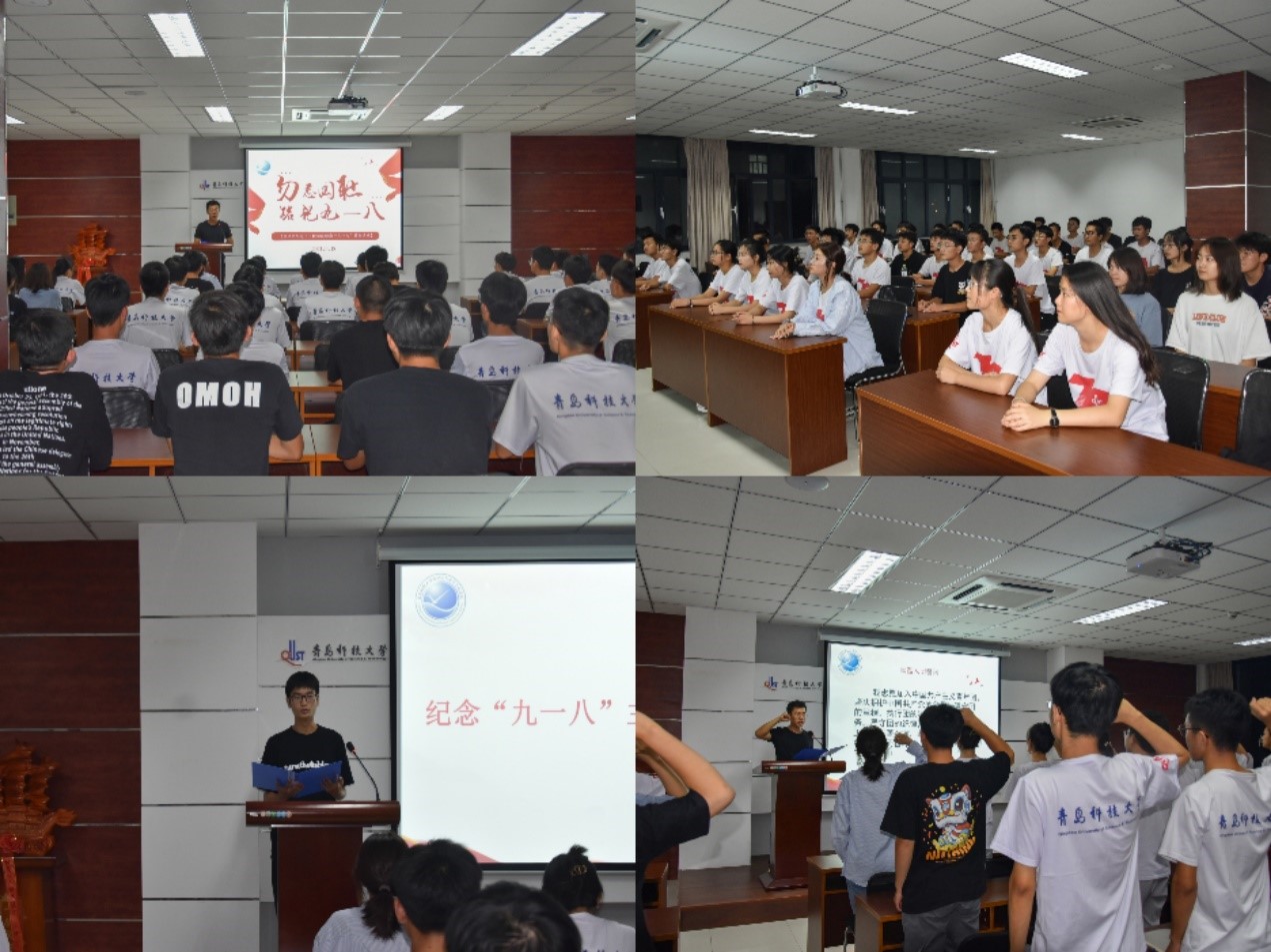 楼406开展纪念九一八宣讲会。所有与会同学一起观看九一八纪录片,共同回顾了那段难以忘却的历史。一幕幕触目惊心的画面,牵动着全体同学的心脉,提醒、告诫着同学们:勿忘历史,勿忘耻辱。学生代表何诚发表演讲,号召大家时时警示和鞭策自己,发奋图强,为共产主义事业而奋斗终生。宣讲会最后,全体同学起立,由刘保顺同学带领宣誓,重温入团誓词。