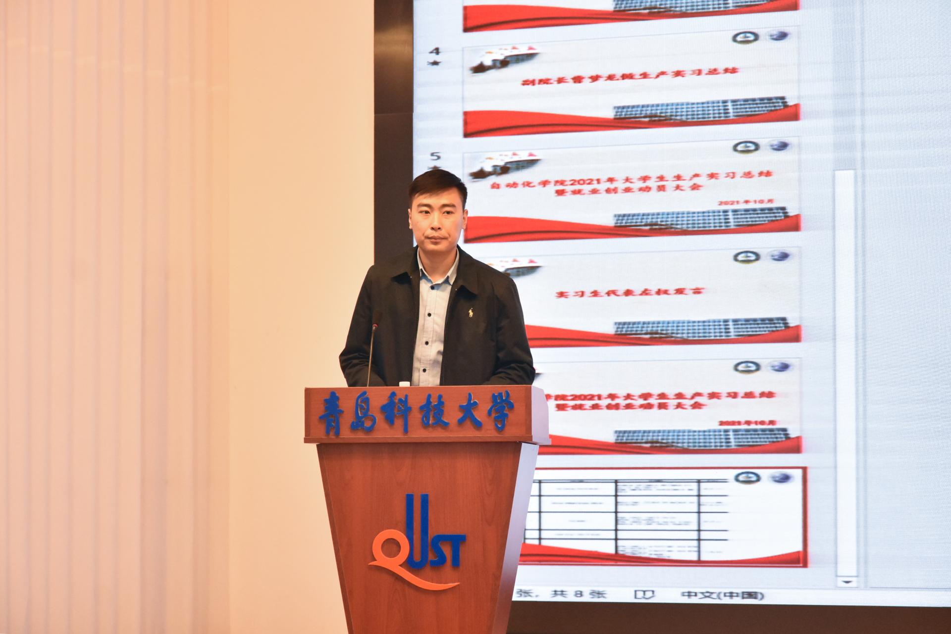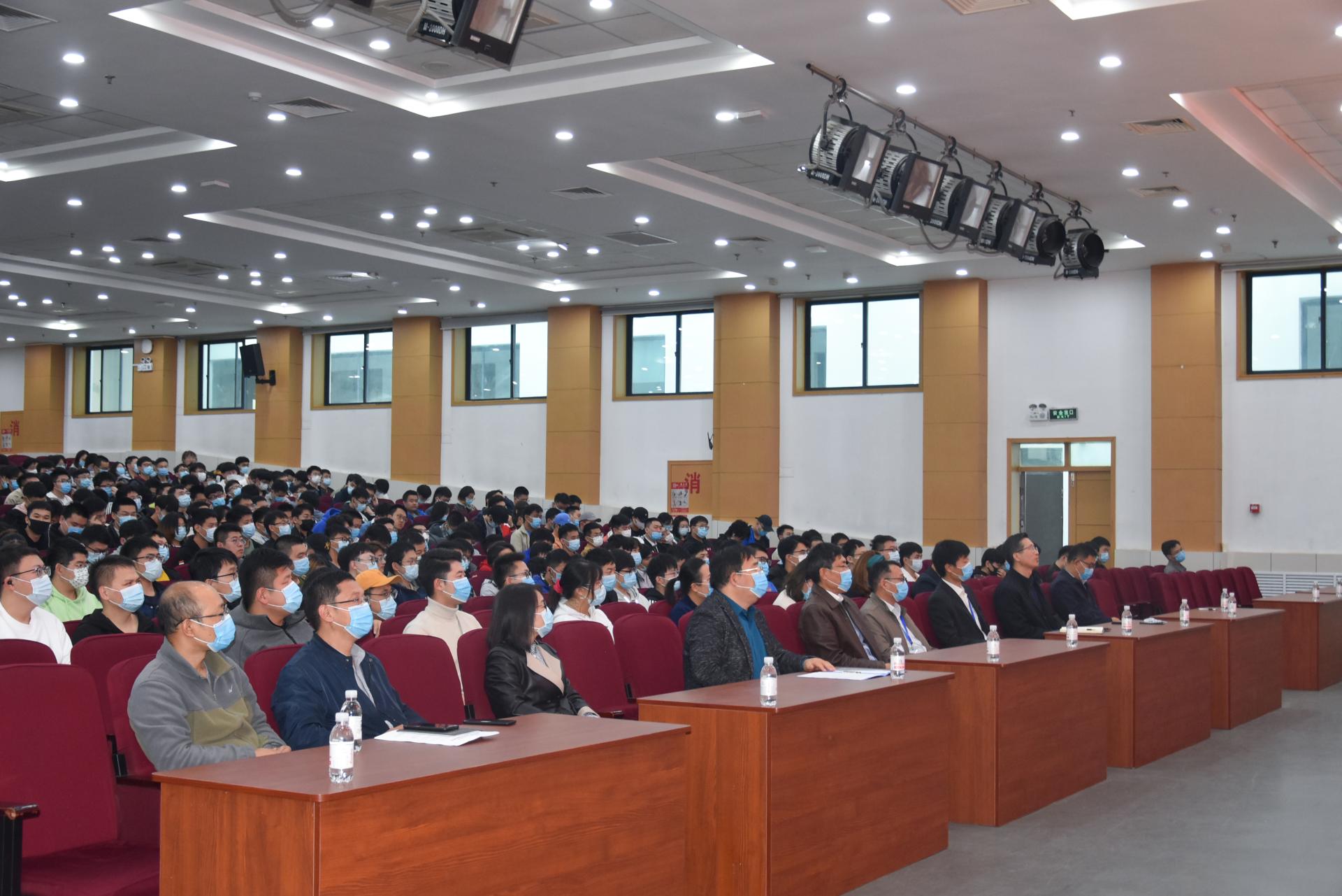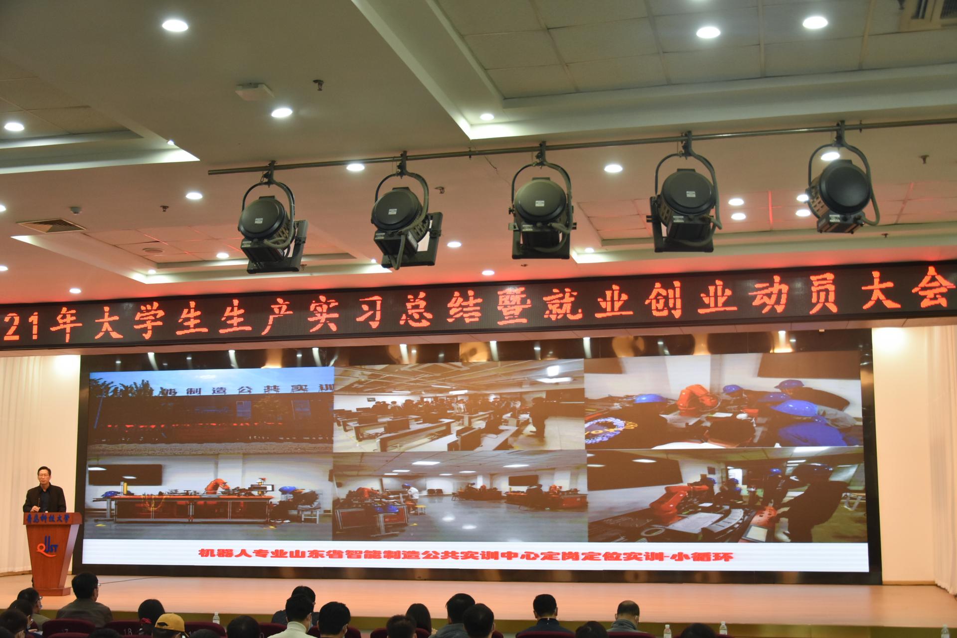 在第二报告厅举行2021年大学生生产实习总结暨就业创业动员大会。教务处副处长贾建闯,学生处副处长、就业指导中心主任徐华,pg电子平台