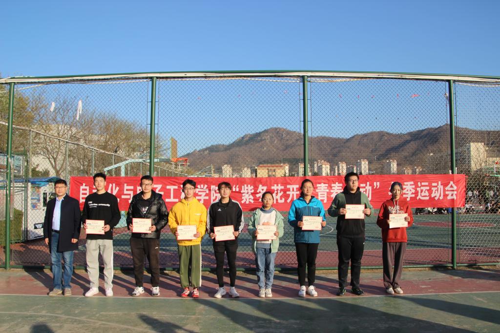 党委副书记兼副院长马寒,团委书记兼学工办主任郭蒙蒙,团委老师张郁浩为取得优异成绩的运动员颁发奖状。
