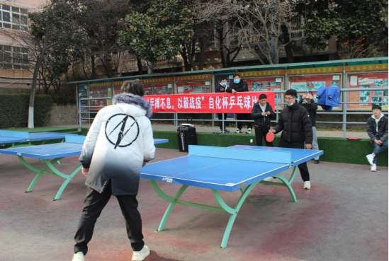 为了进一步丰富疫情防控期间校园文化生活,弘扬积极向上的体育精神,提高广大学生的综合素质,展现大学生蓬勃向上的精神风貌,3月20日下午,“乒搏不息,以毅战疫”自化杯乒乓球比赛在南苑乒乓球台拉开帷幕。