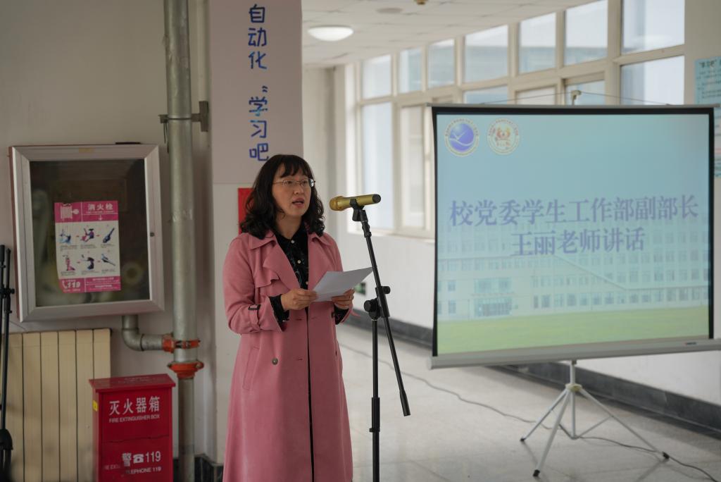 仪式上,学校党委学生工作部副部长王丽讲话。她提出,劳动精神是社会不断追求的崇高精神内涵,志愿服务是社会文明进步的重要标志,也是广大青年学子奉献爱心、参与劳动的重要渠道。星火义工队作为pg电子平台