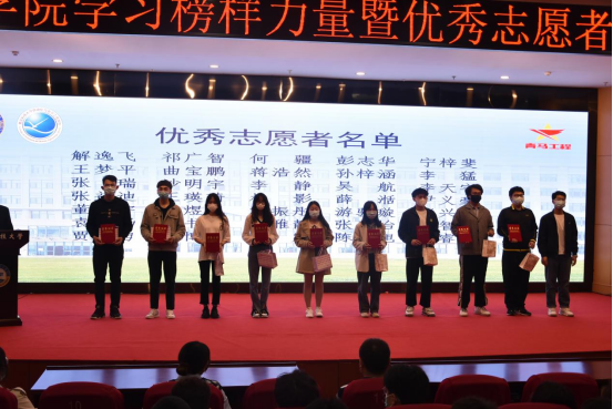 表彰环节中,团委老师张郁浩、安柏雅、赵赪赪为在抗疫志愿服务中表现出色的优秀志愿者颁发荣誉证书。