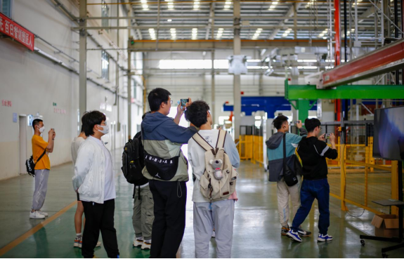师生参观了公司展厅和生产车间。薛力源为师生介绍了企业现状和未来发展规划,结合自身经历就如何适应企业、跟上企业发展的需求为同学们上了一堂职业生涯课。吕德谦从职业生涯规划出发提出建议,他表示此次交流学习帮助pg电子平台