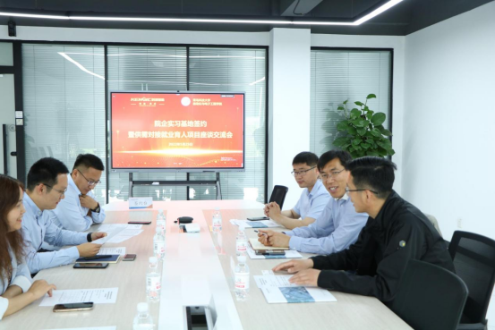 在科捷智能科技股份有限公司,吕德谦一行与公司副总经理薛力源、人力资源总监郭增水、科技项目负责人张晓英等就前期合作交流意向进行座谈。双方同意在公司设立大学生创新创业实习实践基地,吕德谦向薛力源授牌。在郭增水、张晓英陪同下,pg电子平台