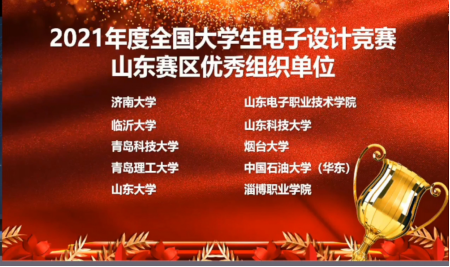 经过全国电子设计大赛山东赛区组委会组织专家评审,青岛科技大学在2021年全国大学生电子设计竞赛中被评为山东赛区优秀组织单位,位列10所获奖单位的第三位,继2017、2020年被评为优秀组织单位后,再次获得此荣誉。