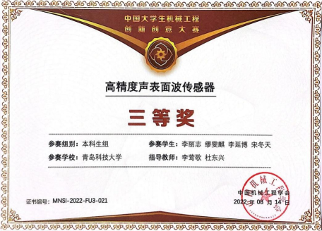 本科生李丽志、缪雯琪、李延博和宋冬天参与的项目“高精度声表面波传感器”通过海选获得本科组初赛一等奖,晋级全国赛获得全国三等奖。