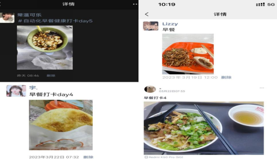 心理工作站特开展“关爱自我,健康早餐”7天早餐打卡活动,鼓励同学们关注心理健康,给身体补足能量,用“一起吃早餐”的仪式感开启美好的每一天。同学们积极响应,认真打卡,关爱自我,健康早餐。