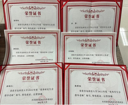 团委书记郭蒙蒙、团委老师安柏雅荣获2022年度优秀青年工作者,团委老师张郁浩、郝雄文荣获2022年度优秀学生会(研究生会)指导老师,团委老师吴擎、张郁浩荣获2022年度优秀学生社团指导老师。