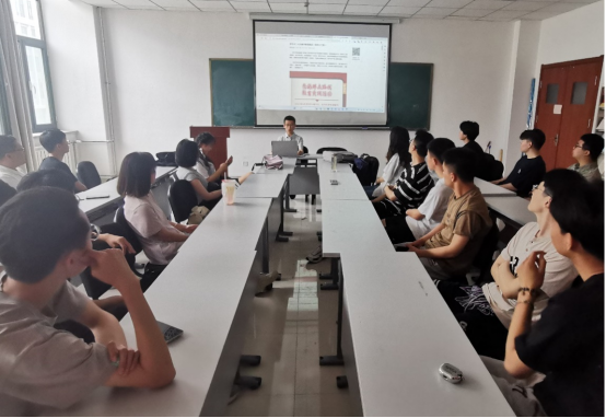 楼410会议室开展“最后一堂党课”,学生第一党支部书记郭蒙蒙老师结合学生们大学四年学习生活的经历,对即将踏上新的学习和工作岗位的同学们提出了殷切的期盼和嘱托,希望同学们能够勇于担当党员责任,时刻不忘党员身份,不断提高党性修养,以昂扬姿态踏上新征程,以奋进青春建功新时代,让青春在全面建设社会主义现代化国家的火热实践中绽放绚丽之花。
