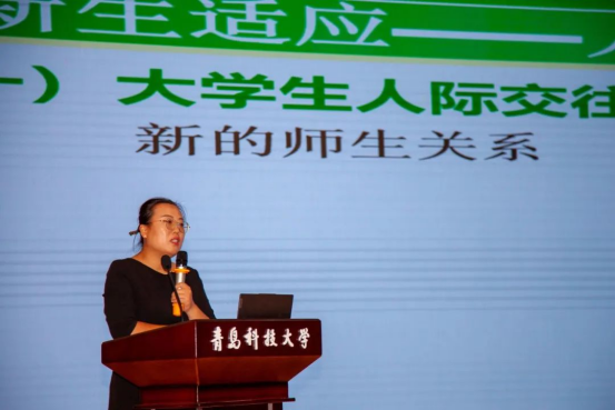 团委书记兼学工办主任郭蒙蒙从新生心理、新生适应和求助途径等三个方面进行了生动详细的讲解。她指出,大学生在学习生活中可能会存在一些常见的负面心理问题,同学们要接纳自我,增强信心,塑造积极心态,在大学期间收获最美好的自己。