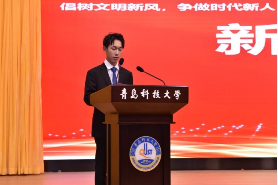 校园文明建设倡议书》,新生代表师宜昂发言。
