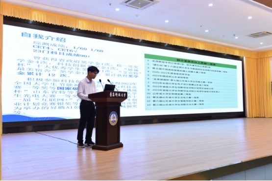 董金宇、王鑫洋、邱萍作为优秀学生代表从学习技巧、科研竞赛、文明礼仪、注意事项等方面为同学们传授自身相关经验,激励同学们踔厉奋进、笃行不怠的奋勇拼搏。
