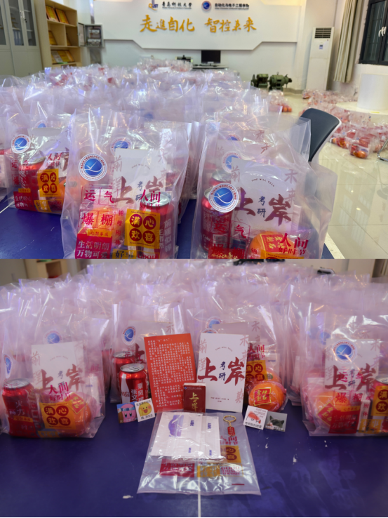 精心准备近500份考研大礼包,有“脐”开得胜、心想事“橙”的橙子,蕴含美好寓意的钥匙扣,专属可乐、口罩和手帕纸,一封给“自”家人的信,用满满的仪式感,为考研学子加油鼓劲。