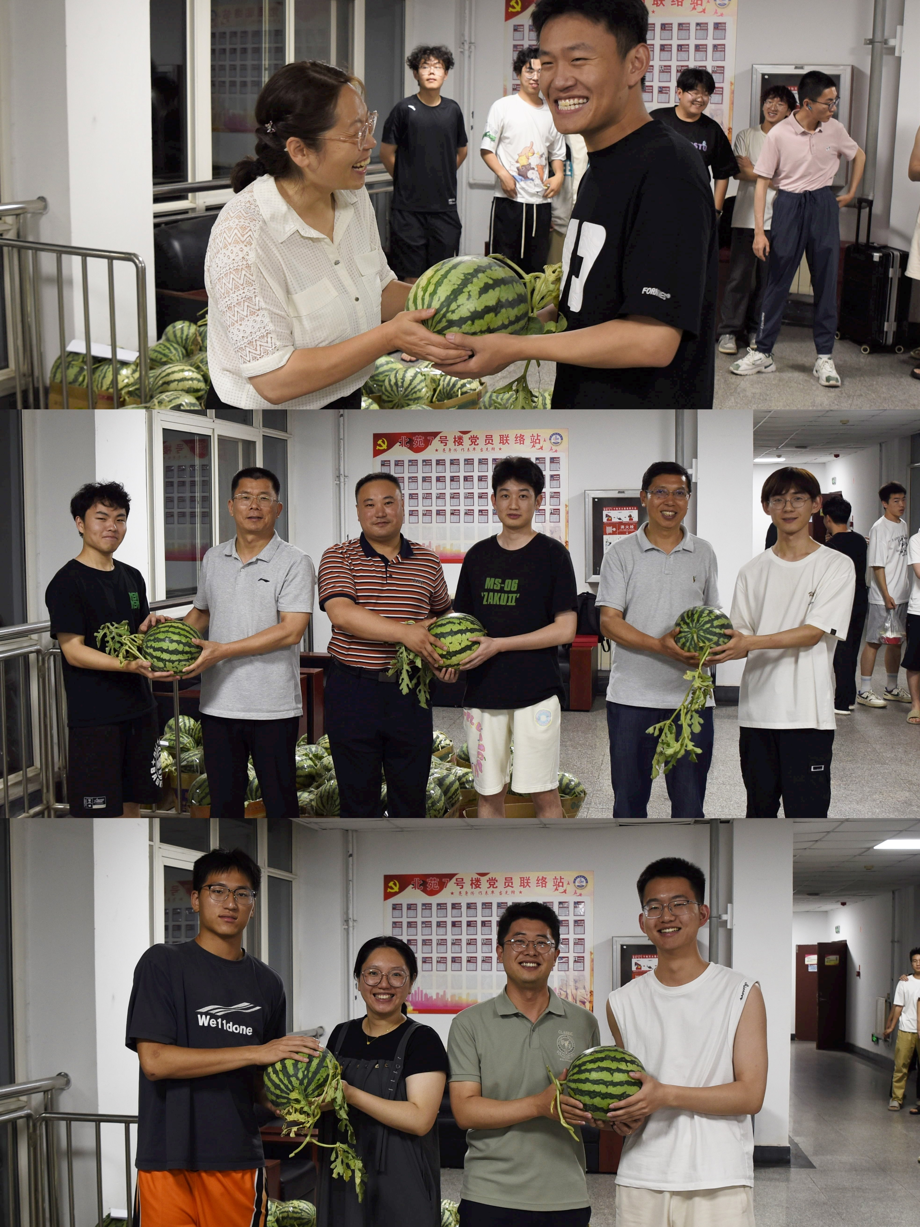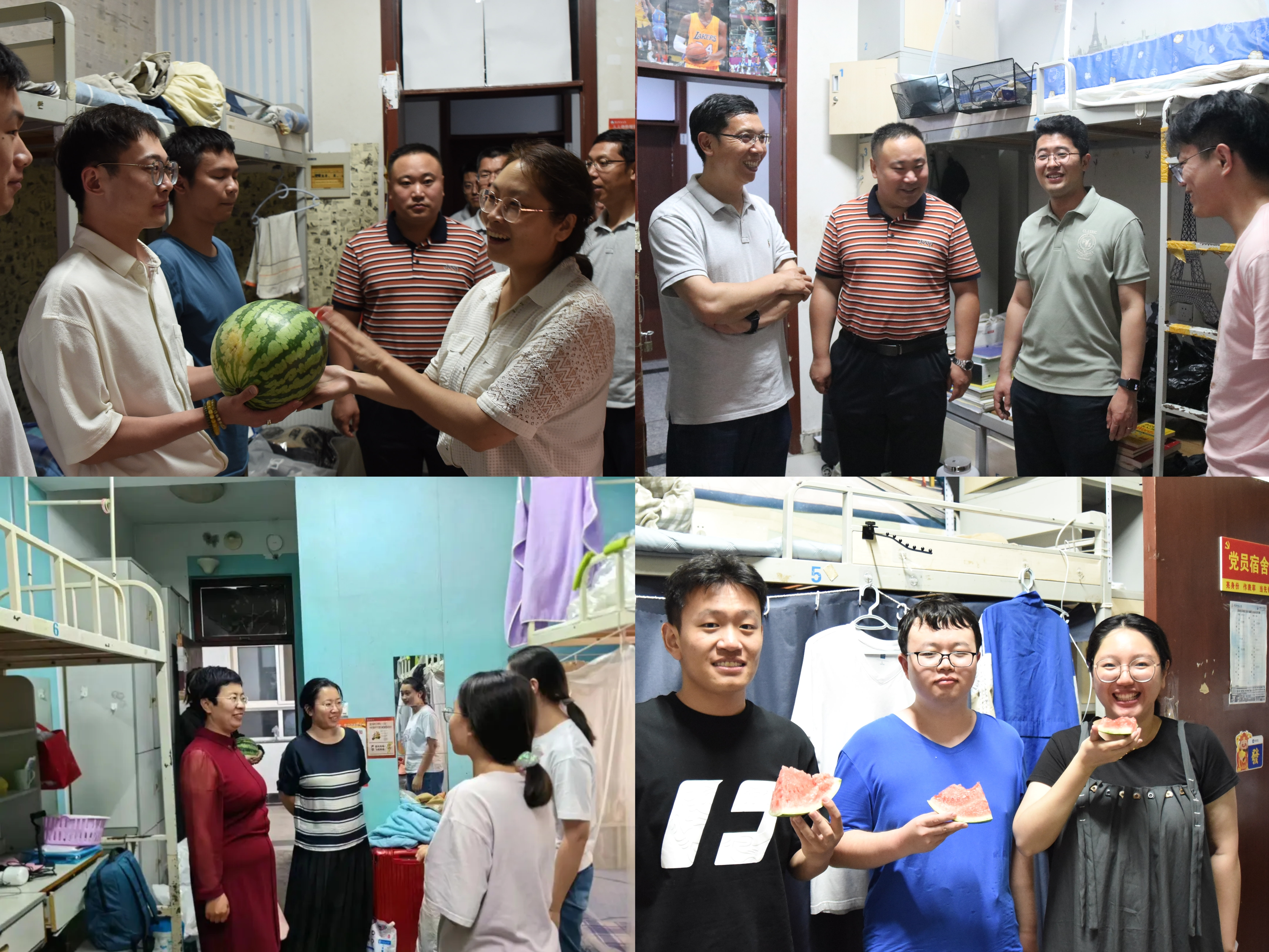 党政领导一行深入学生宿舍,为临行的毕业生送去夏日解暑的西瓜作为临别关怀。pg电子平台