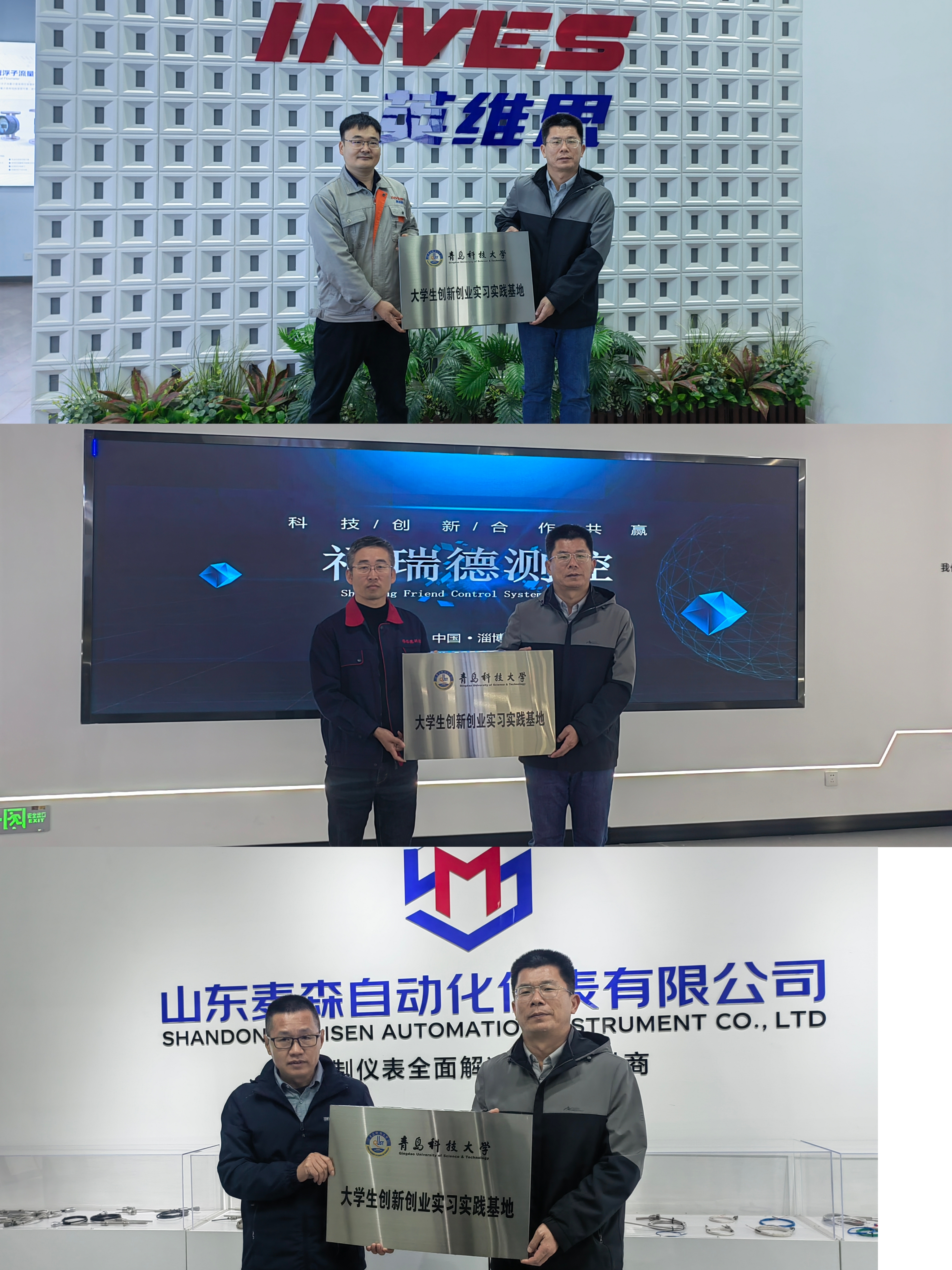与英维思(山东)仪表、淄博福瑞德测控、山东麦森自动化三家公司达成初步意向,设立了大学生创新创业实习实践基地,为进一步建立人才引进和校企共建发展的长效机制奠定基础。
