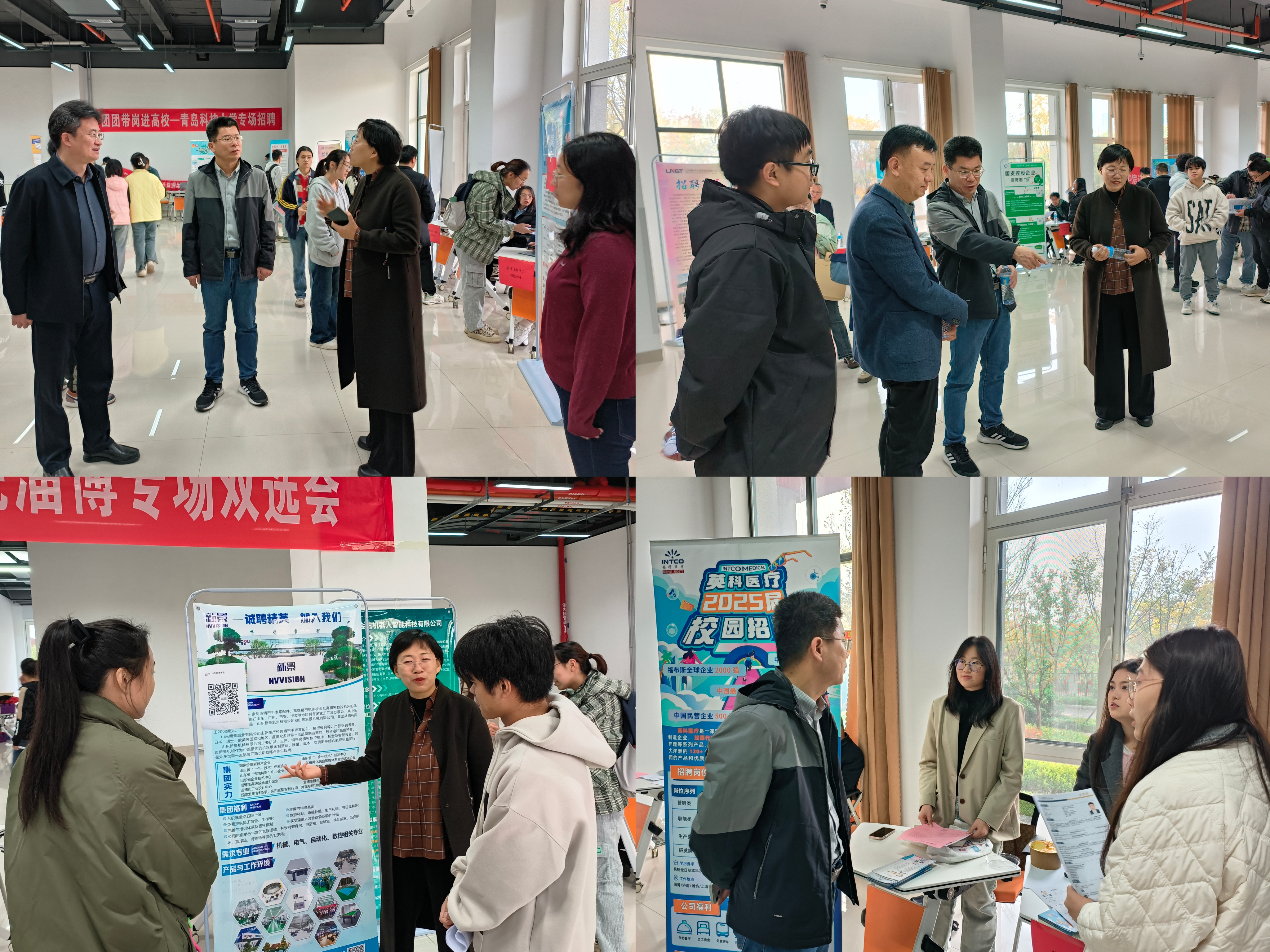 党委副书记兼副院长刘名森、淄博市就业人才中心人才一科科长姜展、教师代表以及毕业生辅导员深入双选会现场与用人单位代表接洽交流,详细了解用人单位岗位情况和人才需求,主动推介优质毕业生。双选会气氛热烈,毕业生积极向意向企业投递简历,并就职业发展前景、专业技能、薪资待遇等方面与企业代表进行交流。