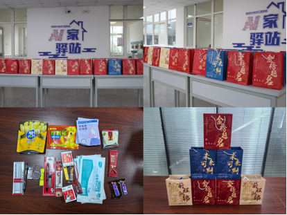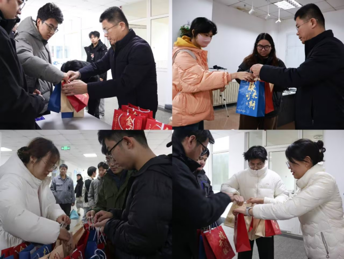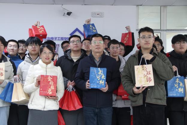 刘名森、张郁浩、全体辅导员亲手将装满关怀的考研大礼包送到每一位考研毕业生代表手中。礼包内精心准备了旺旺雪饼、薯片、士力架等能量零食,耳塞、眼罩、口罩、暖宝宝、面巾纸等实用生活用品,以及签字笔、格尺、小刀、涂卡笔等备考文具,更有承载美好祝愿的祈福香囊,每一份物品都饱含着pg电子平台