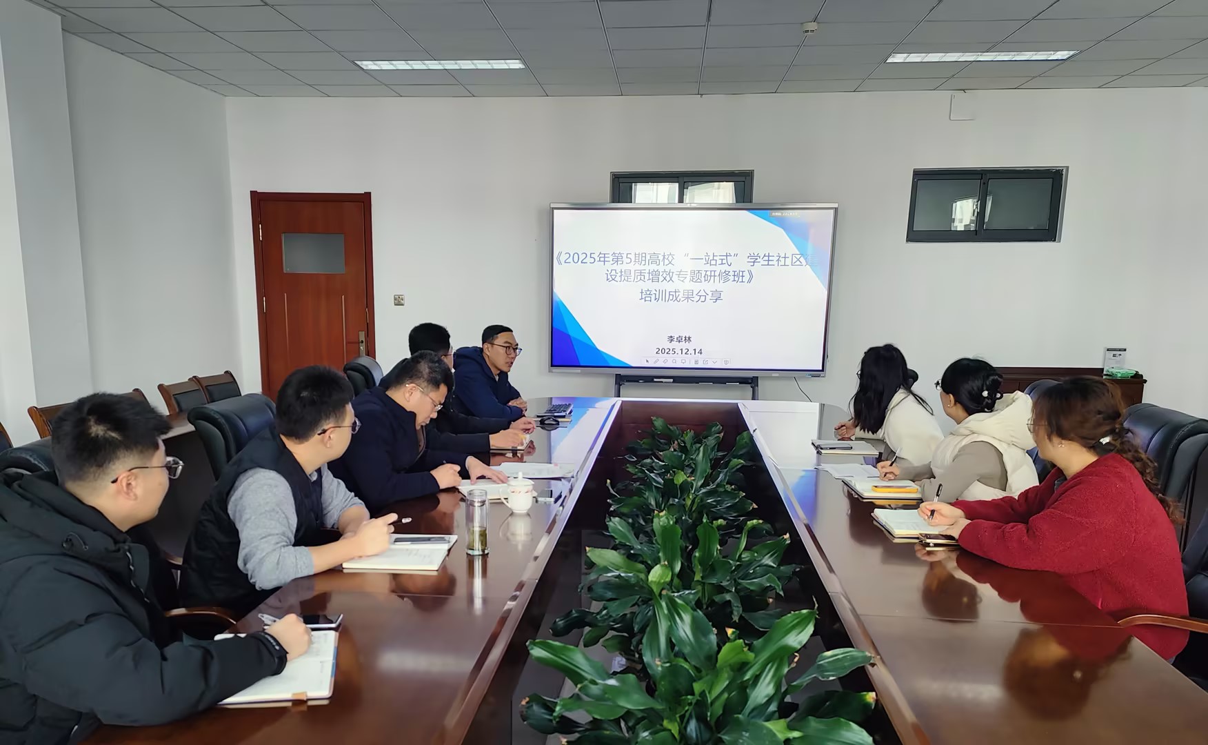 党委副书记兼副院长刘名森、全体辅导员参加会议,共同聚焦学生社区建设的提质增效,交流学习心得。