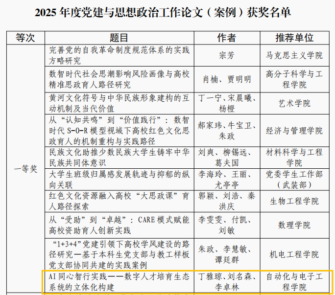 始终坚持立德树人根本任务,将党建思政与学科特色深度融合,依托“智行先锋”党建工作品牌和“AI家驿站”学生社区建设,持续推动理论创新与实践探索。此次多项获奖,是pg电子平台