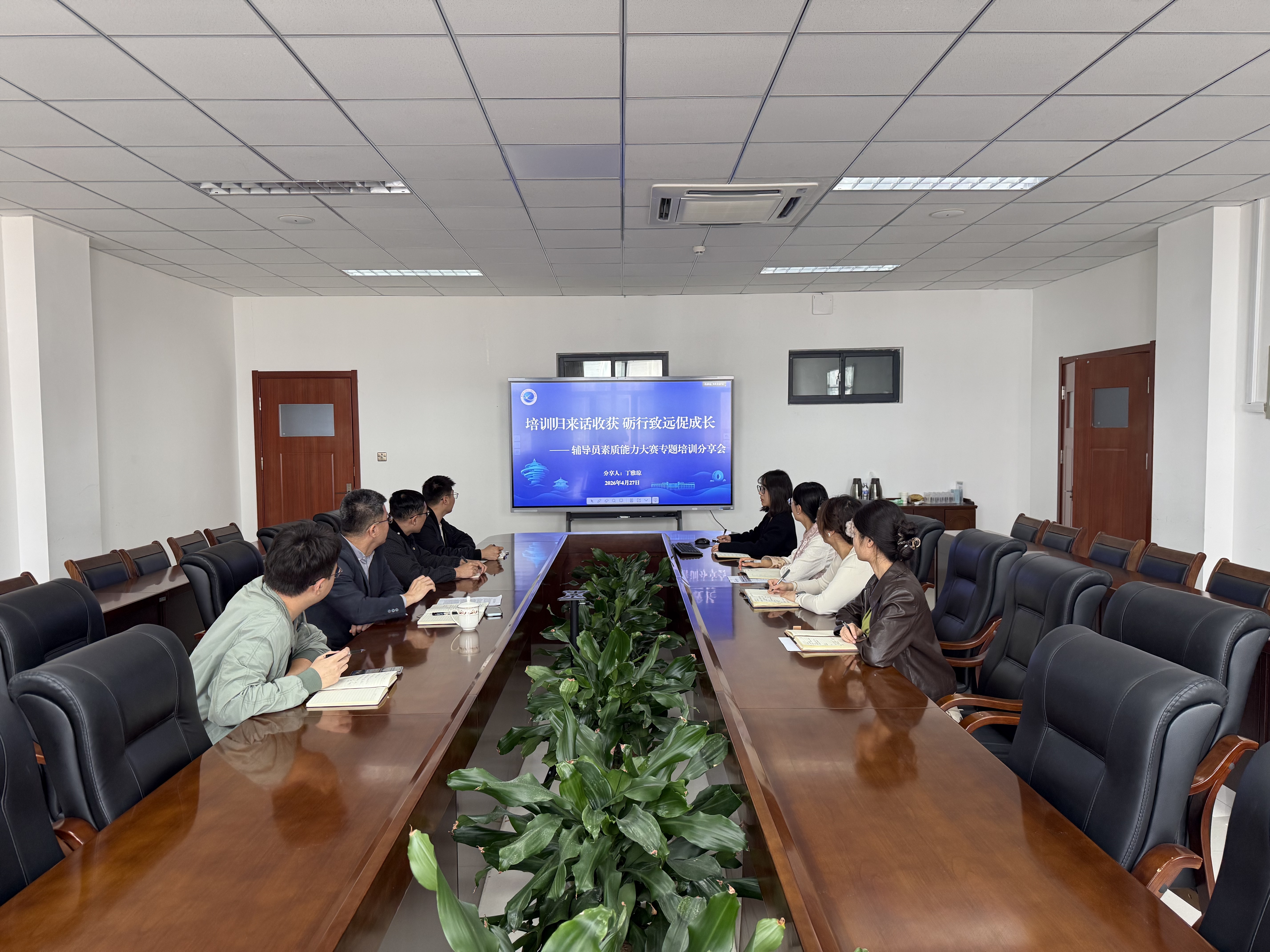 辅导员丁雅琼作培训分享,学工办全体专职辅导员参会。
