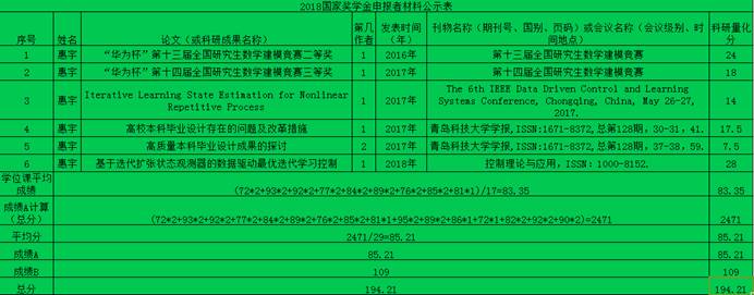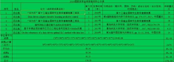 拟推荐2018年国家奖学金同学的排序及材料公示如下: