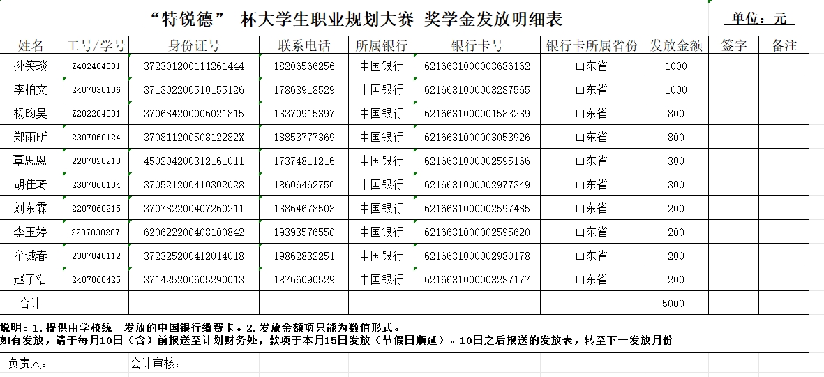 “特锐德”杯pg电子平台 第三届大学生职业规划大赛奖学金公示