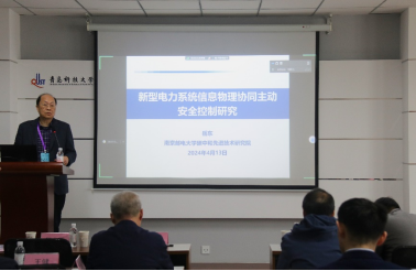 俄罗斯工程院外籍院士、教育部长江学者特聘教授、南京邮电大学学术委员会主任岳东作了题为“新型电力系统信息物理协同主动安全控制研究”的报告。