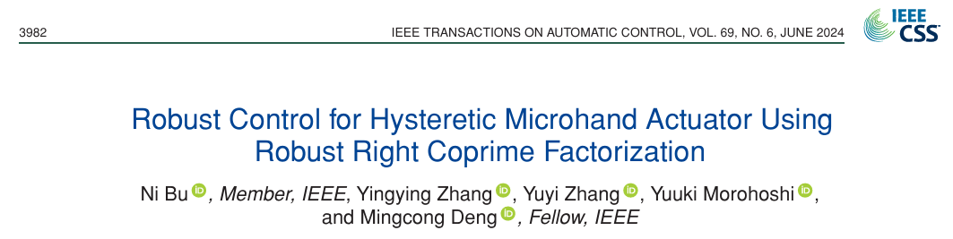 李少远教授团队步妮副教授与东京农工大学邓明聪教授在软体机器人操作研究领域合作取得新进展,相关研究成果以“Robust Control for Hysteretic Micro-hand Actuator Using Robust Right Coprime Factorization”为题发表于中科院一区、Top期刊《IEEE Transactions on Automatic Control》(IF: 6.8)上,步妮副教授为第一作者&通讯作者,硕士研究生张莹莹与张玉义为主要完成人,青岛科技大学为第一通讯单位。