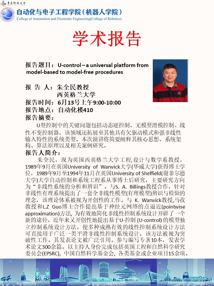 上一篇:学术报告:“系统辨识与控制”高端学术论坛(第6期)