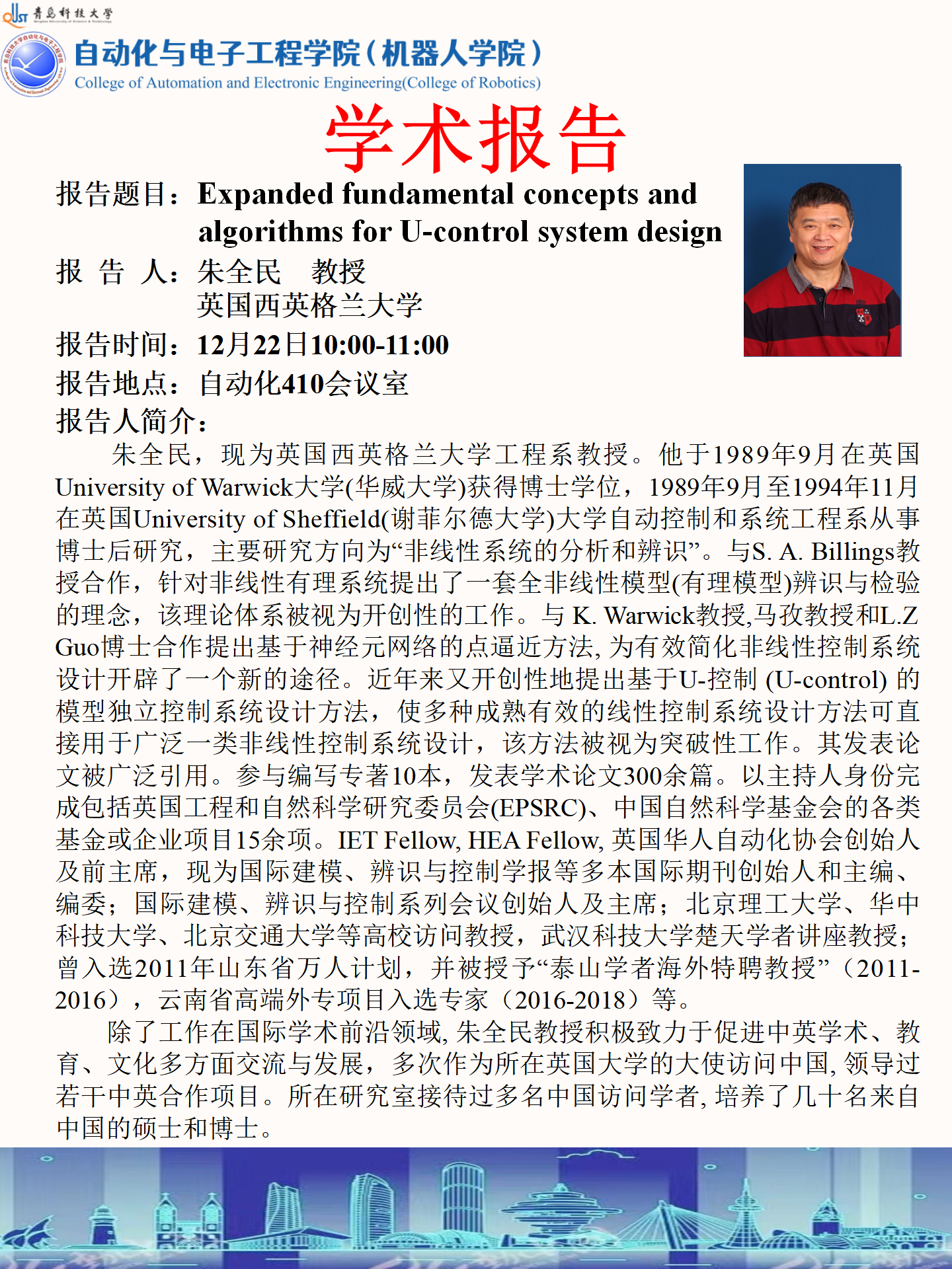 英国西英格兰大学朱全民教授学术报告